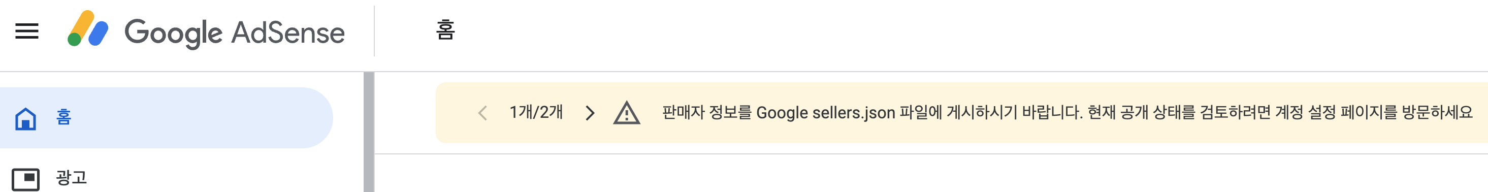 "판매자 정보를 Google sellers.json 파일에 게시하시기 바랍니다. 현재 공개 상태를 검토하려면 계정 설정 페이지를 방문하세요"